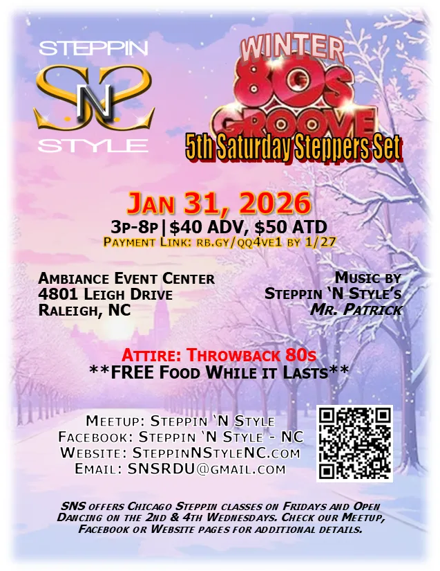 Join the Steppin 'N Style community and take your style — and your step — to the next level. Every other Wednesday it is time to meet us at our midweek mixer and on the 5th Saturday of the month we set it off at our Signature 5th Saturday Set.